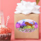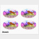 Wish it had some lettering on it, but such a cute design. No lettering. Another one of the few that come in oval without sacrificing graphics.