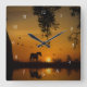 Horse Pond Sunset and Birds Country Square Wall Clock