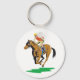 A jockey and a race horse out for a gallop. This design looks really effective on this Keychain