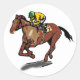 Horse racing is such a wonderful sport to watch as these magnificent animals race around the track. Now this design is of a horse racing and it looks superb. The horse is racing along with the jockey crouched down on it’s back. This horse racing design looks great on these stickers. Perfect for yourself or as a gift