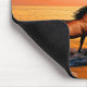 Brown horse runs along the beach on the ocean shore with a beautiful sunrise or sunset in the background horse lovers mouse pad