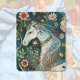 Horse with vintage flowers in the background, a golden sun and a few golden leaves.