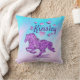 Personalise this "One Of A Kind" Horse Throw Pillow! It Features a Galloping Horse Silhouette in Beautiful Purple Flowers, Surrounded by Large Purple Hearts...on a Pink and Blue Background!