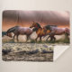 Horse Trio Running In Ocean Surf at Sunset Sherpa Blanket