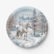 Snowy forest winter scene with a white (grey) horse personalised Christmas design for horse lovers. You can leave the text fields blank.