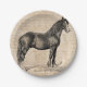 A vintage country and western themed horse with script paper background design with old fashioned illustrated art!
