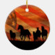 A beautiful american patriotic ornament of horses running with a big American Flag in the background. A great western ornament!