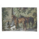 This design features a painting by Bavarian artist Albrecht Adam (1786–1862), who was an official artist to the Bavarian contingent in Napoleon Bonaparte's army during the 1812 Russian campaign. It shows an image of two beautiful thoroughbred horses beside a rustic country house; there are other animals in the scene, such as various dogs, a deer and a rabbit; a stag's head is hanging on the wall, which is covered in beautiful green foliage.
