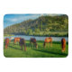 Horses Grazing Near A River And Mountain Bath Mat