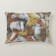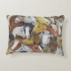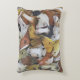 The cushion is small to medium sized. It can be washed. It is well constructed. The material used is pleasant and feels decent quality. It has a very slight plush feel which is good. It is well labelled and its care clearly stated. Theres nothing not to like about it. All in all a good item. The deduction of one star overall is due to long delays in delivery to the UK. It's not clear if this was due to Zazzle or somewhere else in the chain as I did not receive status updates of dispatch or progress. I cannot comment anymore on that other than to say that was our experience but it may not be the same for you. The printing was surprisingly close to what we were expecting. Its an art piece and on material so its hard to assess the precision of printing but it seems close to the original. The soft lines are reproductions of the original. The colour is a fair reflection of the painting. This was printed in the US and it looks like US quality. No issues.