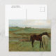 A postcard with the fine art painting, Horses in a Meadow (1871), by the French impressionist artist Edgar Degas (1834-1917). A portrait of two horses one brown and one white in the pasture.