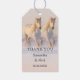 Elegant wedding gift tag featuring two white horses running in the snow as the sun is setting. Beautiful for a winter wedding.