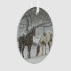 Winter scene of two horses in the snow, image repeated on the reverse.