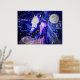 Fairy Tale Horses Blue Night & Full Moon Posters Prints - Love Horses - Pop Art Style Digital Animal Art - Digital Horses Artwork - Farm Animals