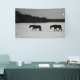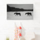 Horses On Snow - Landscape photograph in black and white of two horses walking across a snow covered field.