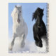 Beautiful Black and White Horses Running through the snow