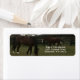 Return address labels with photo of two brown horses grazing in a fenced pasture