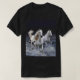 I give wanted to give this a 4 instead of a 5 because these Basic DARK T0shirts run unexpectedly SLIM or Narrow. Which is great if you do not have a potbelly, but I have a paunch. It isn't the shirt's fault that I've got a beer belly. The design and shirt itself is a quality cotton shirt. The color is more of a deep purple, but still a very pretty color. The Basic DARK T-shirts run a bit SLIMMER than the Basic Ts. The neck is a fraction narrower (or seems to be narrower) also. I'm a paunchy middle-aged woman and my neck is 12 inches (31cm) thick and the neckline fell about the same as in the photo of the man, and I had the desire to tug it a bit. So if you're a thick necked man or like loose shirts, be aware these are slimmer shirts. Once I get rid of my lockdown paunch it'll look great. The shirt washed well in cold water with no apparent bleeding. We don't have a dryer, so it hung dry. Did not shrink. Love the colors and the design. The design looks smaller on my shirt than it does on the model on-line. But still, it looks good on the shirt. The printing looks as it does on the model, just the size seems fractionally smaller. Washed garment in cold water, hung dry and design appeared unaffected.