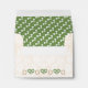 St. Patrick's Day themed shamrock Lucky In Love couples shower, engagement party, bridal shower, anniversary celebration or wedding RSVP RESPONSE card ENVELOPES with a green heart with white shamrocks inside of it, gold look lucky horseshoes and a customisable banner that says Lucky in Love. A cream and white parchment antique look background with a subtle damask lace look pattern makes this Irish theme ENVELOPE pretty and elegant. This vintage modern design is perfect for a March event. GREEN AND WHITE SHAMROCK AND HEARTS PATTERN ON THE INSIDE OF THE ENVELOPE. Artwork © Chrissy H. Studios, LLC. All rights reserved