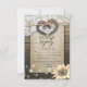 Rustic Country Style Wedding RSVP / Kindly Reply Card Templates - Couple Old Horseshoe Heart with Rope Bow Knot and White Lace, Sunflower, String Lights and Burlap Cloth on Old Barn Wood Background.