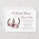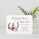 Pretty floral pink and burgundy bouquet and rustic horse shoes design bridal shower invitation with editable text and barn wood design on back.