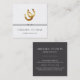 Rustic yet refined business card design features two golden watercolor horseshoes and your business name on the front, adorned with knotted rope detailing. Personalise the reverse side with your full contact information in white on brushed antique charcoal brown. Perfect for riding instructors, horse trainers, stables, equestrian centres and other occupations.
