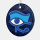 Ceramic ornament with Eye Of Horus, the symbol of protection in Ancient Egypt. This design features the Horus Eye in blue tones on faded Horus Eyes in the background.