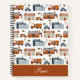 If your kid loves emergency services like police and fire, this custom red and blue school notebook is perfect! Notebook features a pattern of a hospital, fire station, and police station. There are also emt vehicles like a police car, firetruck, and ambulance. Notebook may be personalized with a kids name on top of a red background. This notebook makes a great back-to-school, birthday, Christmas, or other holiday gift, especially for a little boy.