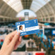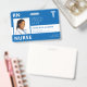 Modern typography hospital or medical facility employee RN nurse custom photo personalised ID blue horizontal badge with bold typography, barcode, and your logo. +++++++++++ Template easy to personalise with your photo and details on both sides.