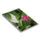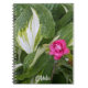 A personal sized, spiral bound notebook for notes and journalling that features the cover photo image of variegated Hosta plant leaves and one, pink Azalea bloom. A lovely, floral design! Use as a journal or for taking notes.