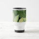 A garden photo of two contrasting Hosta wrapped around a travel coffee mug. A great garden gift for the shade gardener that lasts all year.