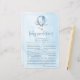 This is a Blue Hot Air Balloon baby shower predictions activity. It allows guests to guess the gender, date of birth, time, weight, hair colour, eye colour, length, etc. There is also a line to give advice.