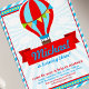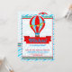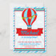 Up, up and away! Celebrate your Birthday Party with our Hot Air Balloon Party Invitation. This hot air balloon birthday invitation features a modern red and blue hot air balloon on sky blue stripes background. Perfect for your little one’s hot air balloon first birthday party or hot air balloon baby shower party.