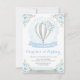 Hot Air Balloon Blue Silver Floral 1st Birthday Invitation