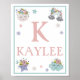 Personalise this hot air balloon themed art print set with your child's name! This collection includes three different hot air balloons surrounded by cute rainbows, clouds, and moon. The fourth piece of this set is customised with your child's name and initial. Change the border and text colours for additional customisation.