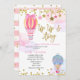 Hot Air Balloon Glitter Star Girl Baby Shower Invitation
