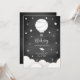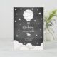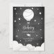 A graduation annoucement featuring a dark grey watercolor inspired background with white text surrounded by stars and illustrations of white hot air balloon and clouds with white graduation cap at bottom. Personalise the text on front.