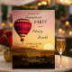Romantic engagement party invitation featuring a hot air balloon over a dreamy landscape at sunset.