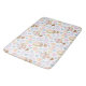 A bath mat with a cute and whimsical pattern. Hot air balloons and cute clouds with faces among stars and hearts and balloons. Soft pastel colours make up this adorable design. A white square layered over top with your text inside.