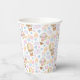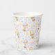 Paper cups with a cute and whimsical pattern. Hot air balloons and cute clouds with faces among stars and hearts and balloons. Soft pastel colours make up this adorable design. A white square layered over top with your text inside.