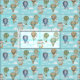 Bright colourful vintage watercolor of hot air balloons filling the air full of puffy white clouds on a sky blue background. All fabric can be resized and background colour can be changed by contacting the artist.