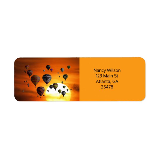 Hot air balloons in flight against a beautiful orange sky. 100% Customization. Click on the CUSTOMIZE button to add, move, delete, resize or change any of the fonts or graphics.