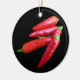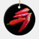 This holiday ornament features brilliant scarlet red hot chilli peppers on a black background. Won't this look great hanging from your Christmas tree?