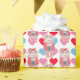 This delightful design has a background pattern of red, pink and blue hearts. The top pattern is made up of this adorable bull, in a pink sweater with a cup of hot chocolate.