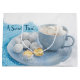 This delightfully sweet gift bag features a cup of hot chocolate and a plate of sweet treats. The light blue cup and plate are set against a white background. The text, "A Sweat Treat" can be personalised. This design is on the front and back, while the sides are white with a repeating pattern of blue snowflakes. Gift bags are available in large, medium and small.