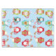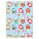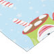 Hot Chocolate Christmas tablecloth, colourful and fun, features a starry blue background with red, green, and blue mugs of hot chocolate with candy canes and marshmallows. The mugs have eindeer, snowmen, Santa, and penguins!