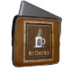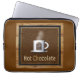 A digital rendering of a cup of steaming hot chocolate on a wooden wall sign.