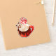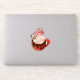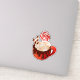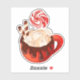 This appealing and cosy illustration features a red mug overflowing with rich hot chocolate and decadent toppings. The drink is finished with a layer of fluffy marshmallows or whipped cream, a chocolate drip, two wafer sticks, and a prominent red and white peppermint lollipop. This detailed graphic is perfect for die-cut stickers, winter-themed mugs, baking accessories, or any product celebrating cosy winter drinks and treats.