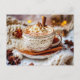 hot chocolate, rich and creamy, cosy evening holiday postcard