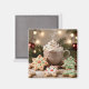 A sweet Christmas magnet featuring an illustration of a whimsical cup of hot chocolate and sugar cookies.